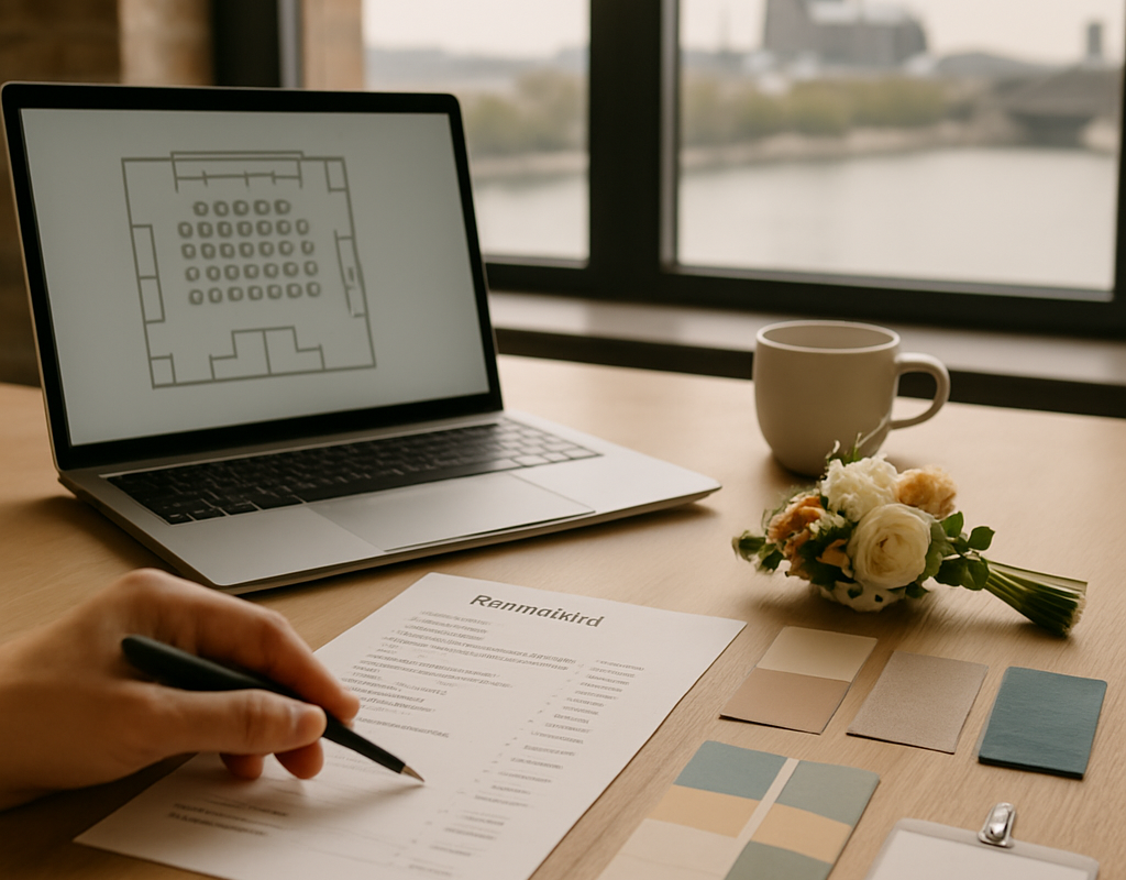 - 6–3 Monate vorher: Feindetails: Menü, Dekor, Transport, Genehmigungen und eventuell Hoteloptionen.